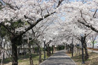 아양교 기찻길은은 폐선된 철길을 따라 조성된 벚꽃 명소입니다.